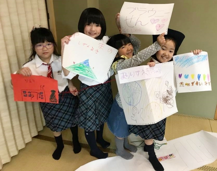 - ブラウニーものがたりを読み聞かせ。小学校低学年のお友だちは真剣に聞いています。