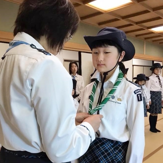 - 中学生にフライアップしたNちゃんにチーフを授与しました。