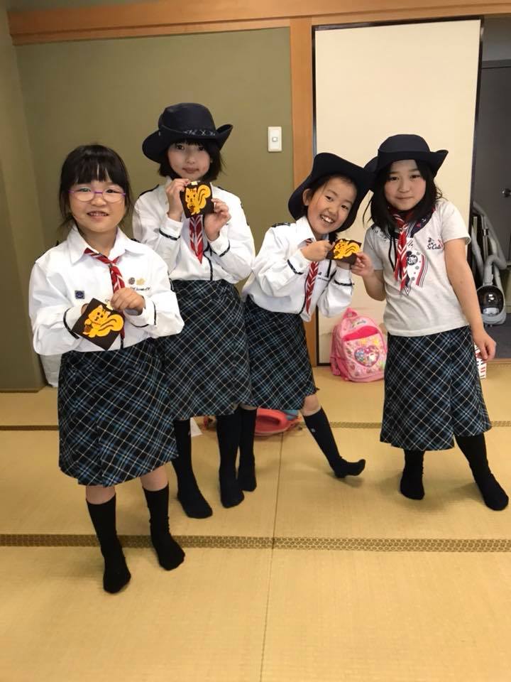 小学校低学年のブラウニー部門は今年の自分たちのパトロール章をデザインから考えて作りました。今年は「リスパトロール」です。
