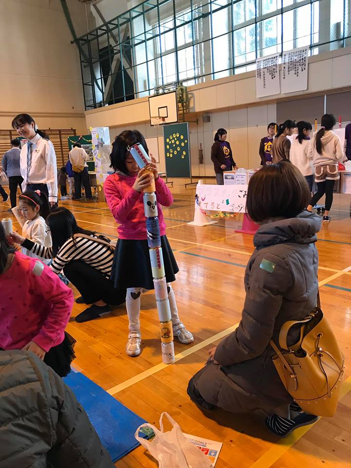 - 空き缶詰みは人気コーナー!みんな集中してチャレンジしてくれました!