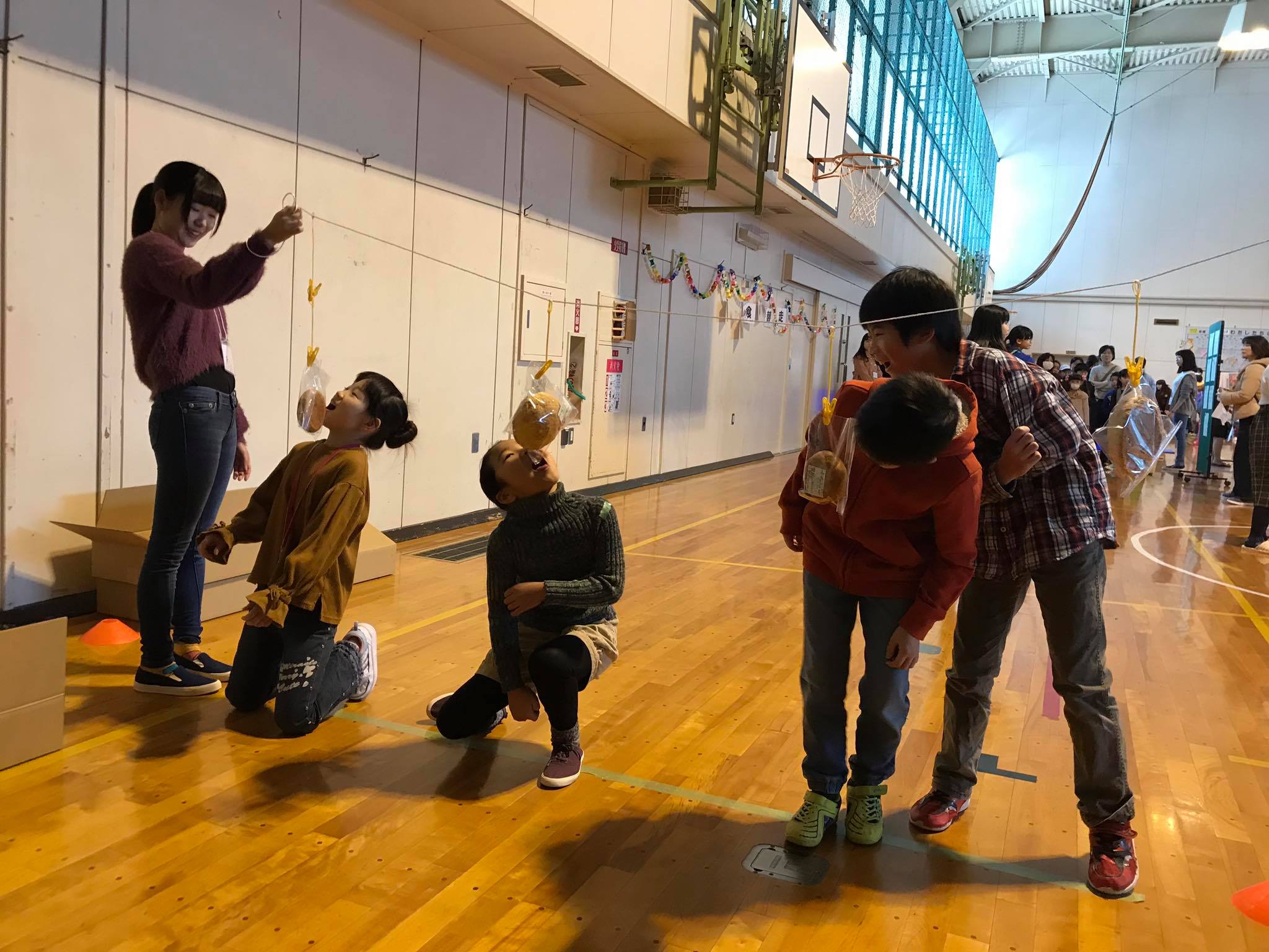 - 恒例のパン食い競争は中学生スカウトの担当。SDGsのクイズに答えてから挑戦できます。