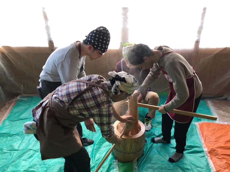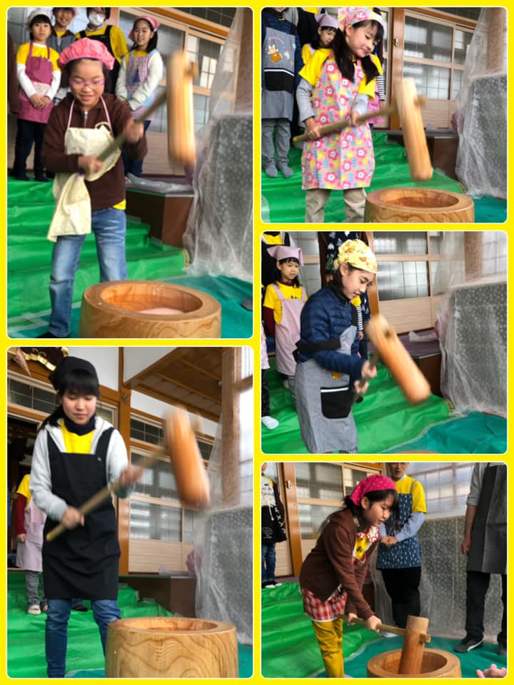総勢65名のみなさんともに力を合わせておいしいお餅を作りました。